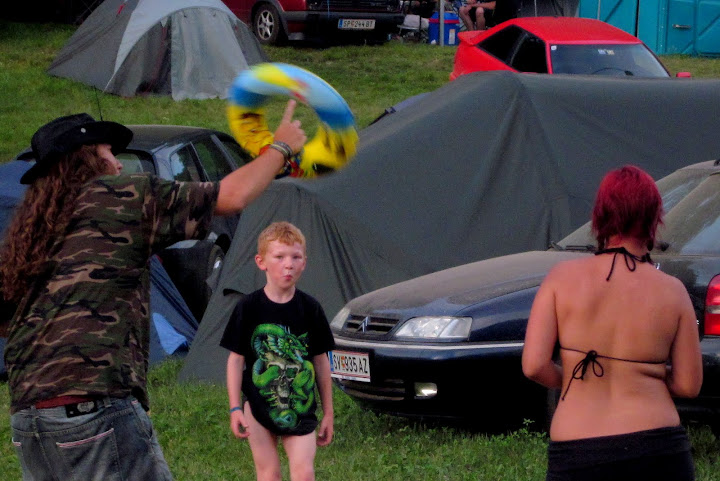 Ese desfase molaba para las noches, pero las mañanas preferíamos pasarlas en la primera playa. Plantar las sillas, refrescar los pies en el agua, hacer botar las piedras sobre el río, beber latas de Lasko, una detrás de otra, construir pequeños dólmenes con piedras, darse un baño de vez en cuando, navegar sentado el flotador, las patatas fritas del aperitivo, hablar con gente y aprender de sus costumbres y culturas, meter el sombrero en el agua para refrescarte la cabeza… Eso, señores, es Metalcamp: tranquilidad, agustismo…