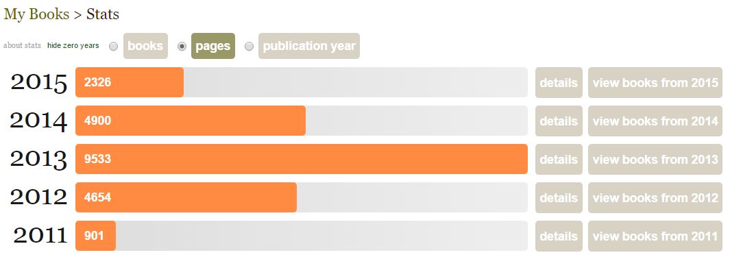 Y si marcamos la casilla "Pages", aparecerán las páginas leidas al año:
